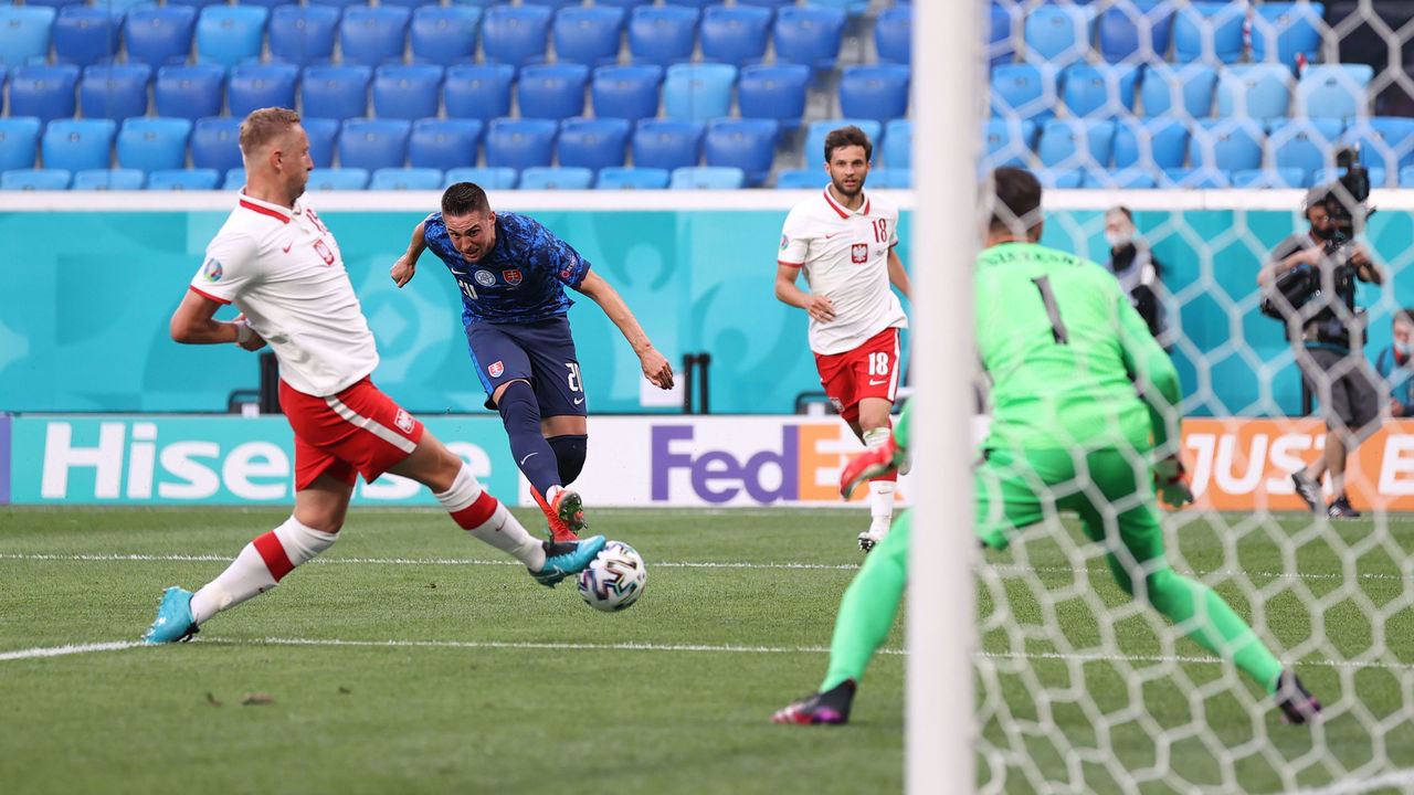 Slovakia opened the scoring in the 18th minute when Robert Mak’s close-range effort pinged off the near post and ricocheted off Wojciech Szczesny’s back and into the net. The Juventus netminder became the first ‘keeper to score an own goal in European Championship history.