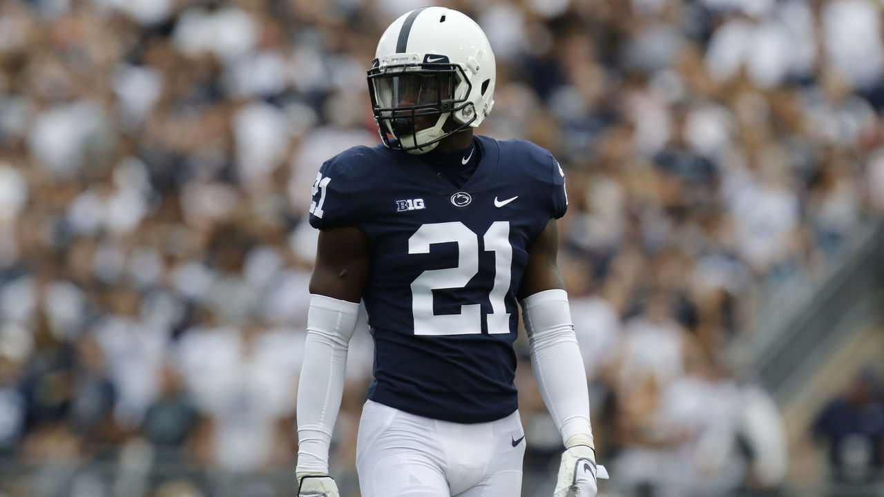 It’s difficult to conceive of a more simple uniform than the Nittany Lions’ white stripeless pants, navy blue stripeless home jerseys, and logo-less white helmets adorned with a single navy stripe. In this case, simplicity is pretty close to perfection.